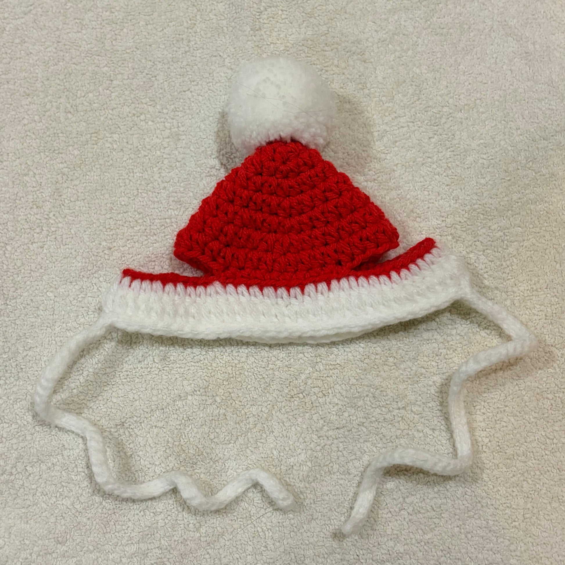 Adorable 100% handmade cat hat made with soft red and white yarn.